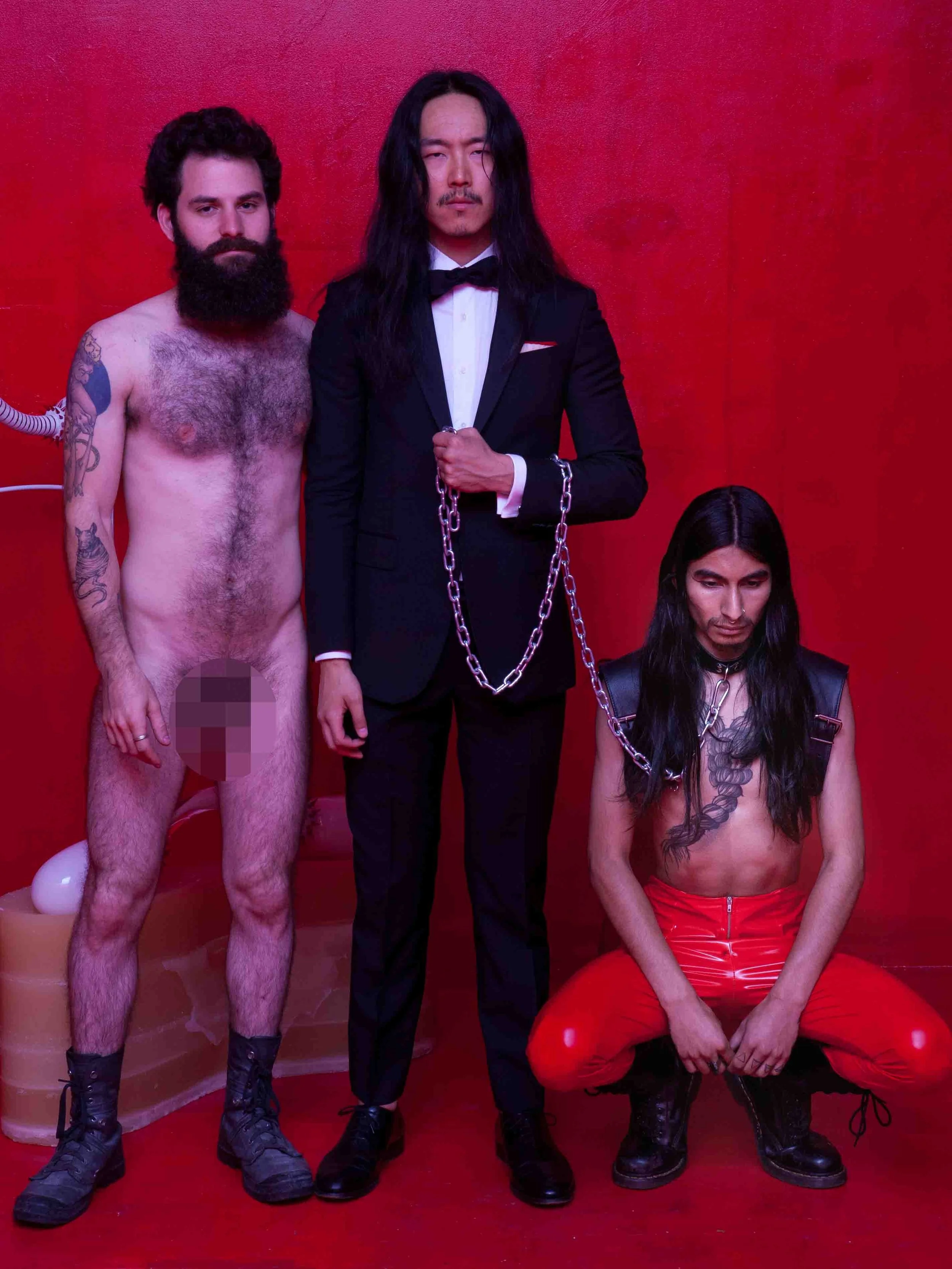 “Prone” is made up of 16 works employing, glass, steel, wax, wood, rubber, fiber, video and performance. For his performance, aptly entitled “The Box”, Clark stands naked in a 4ft by 8ft wooden box at the center of the glossy red gallery room. The box has to arm holes at the front and four peepholes around the back and two sides - all with a different perspective into his world.