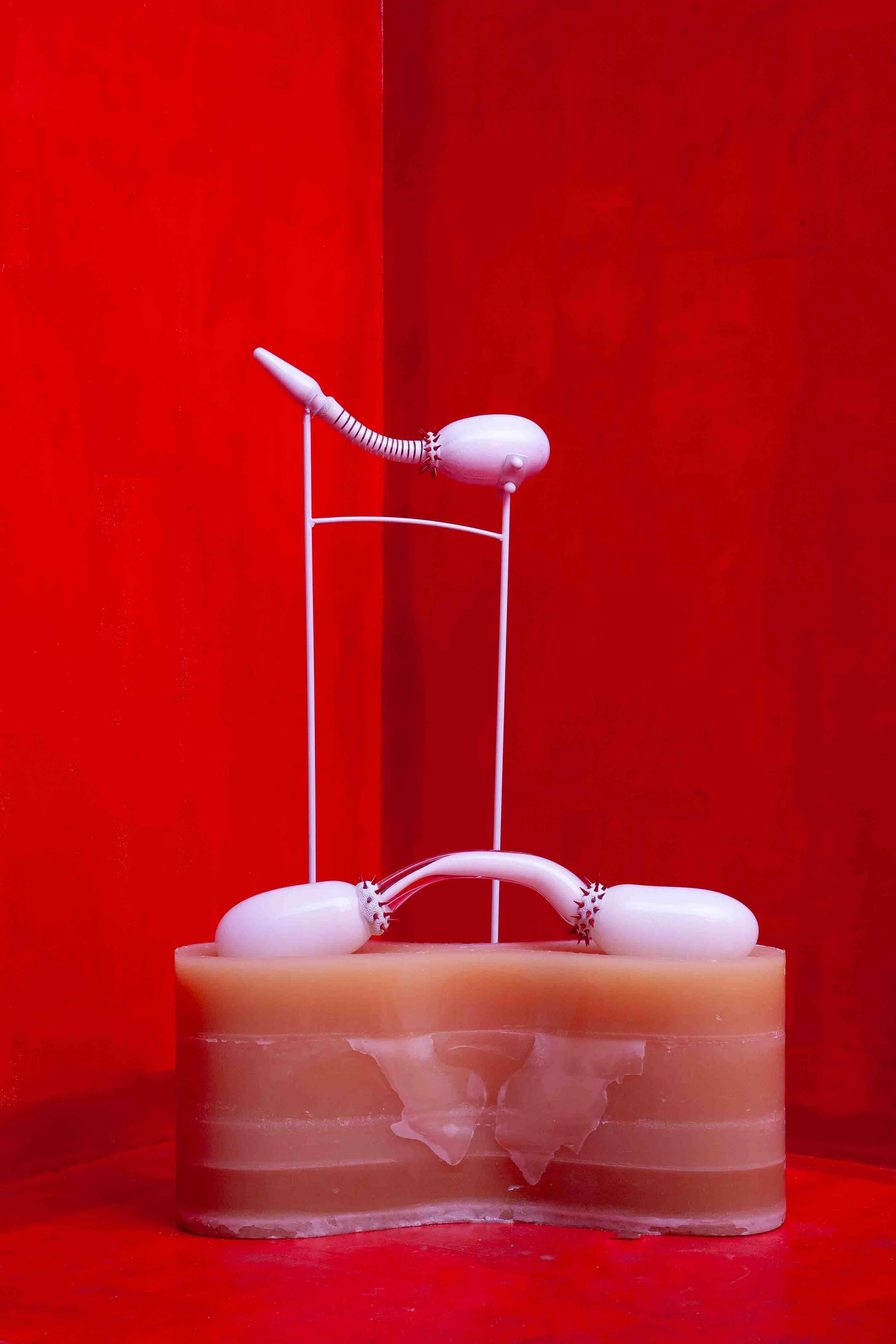 The suggestive objects that make up Andrew Clark’s “Prone”, explore the fallacy of gender roles and masculinity. Androgynous forms mimic the human anatomy and grapple with the conflict of the artist’s own identity. A cutting but clean confrontation of the sexual body, queerness and erotic ambiguity.